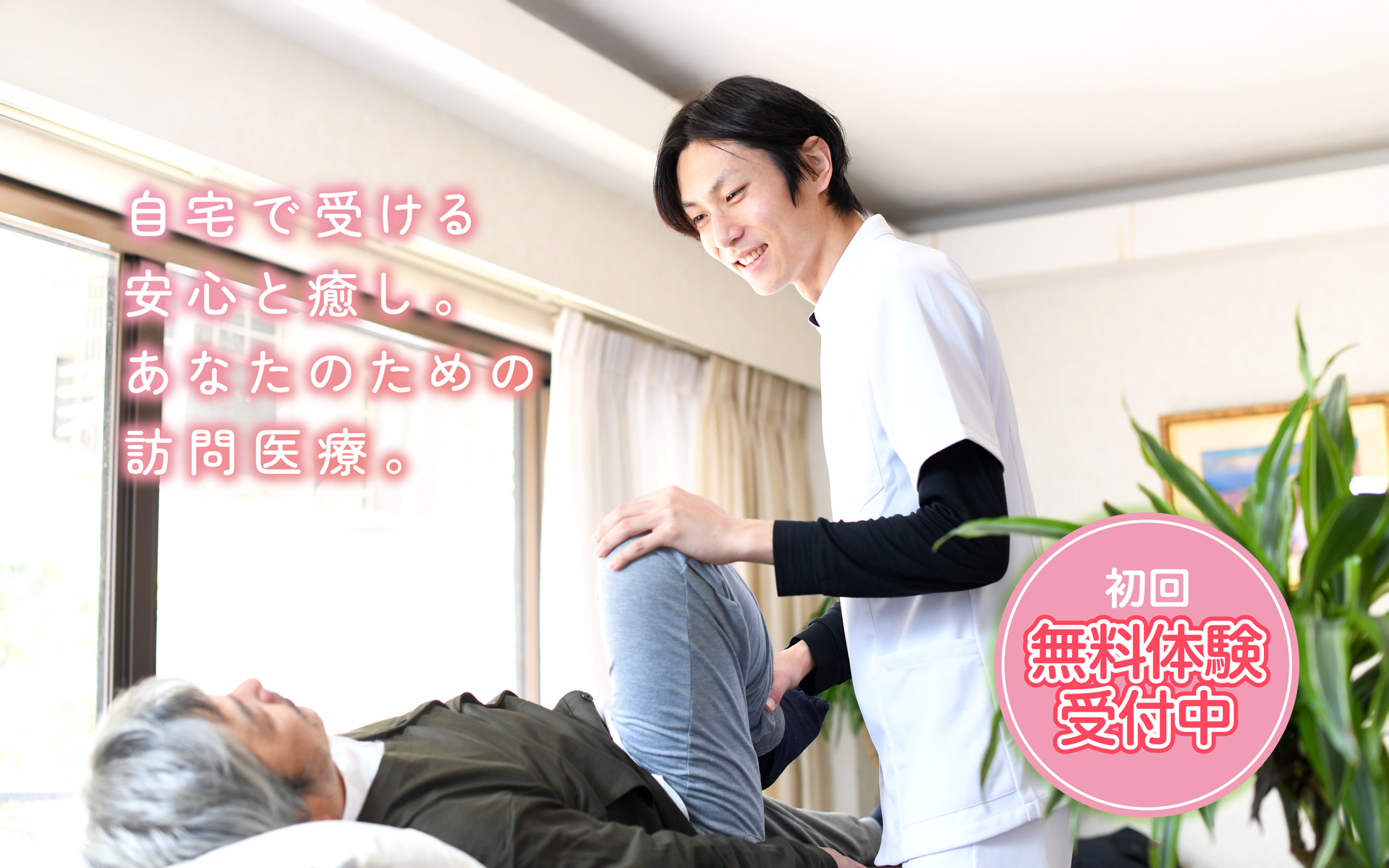 施術者がご自宅へお伺いし、ご本人様とご家族様のご要望や、ご本人様の健康状態等をお聞かせいただいた後、はり・きゅう・あん摩マッサージ指圧施術を体験していただきます。